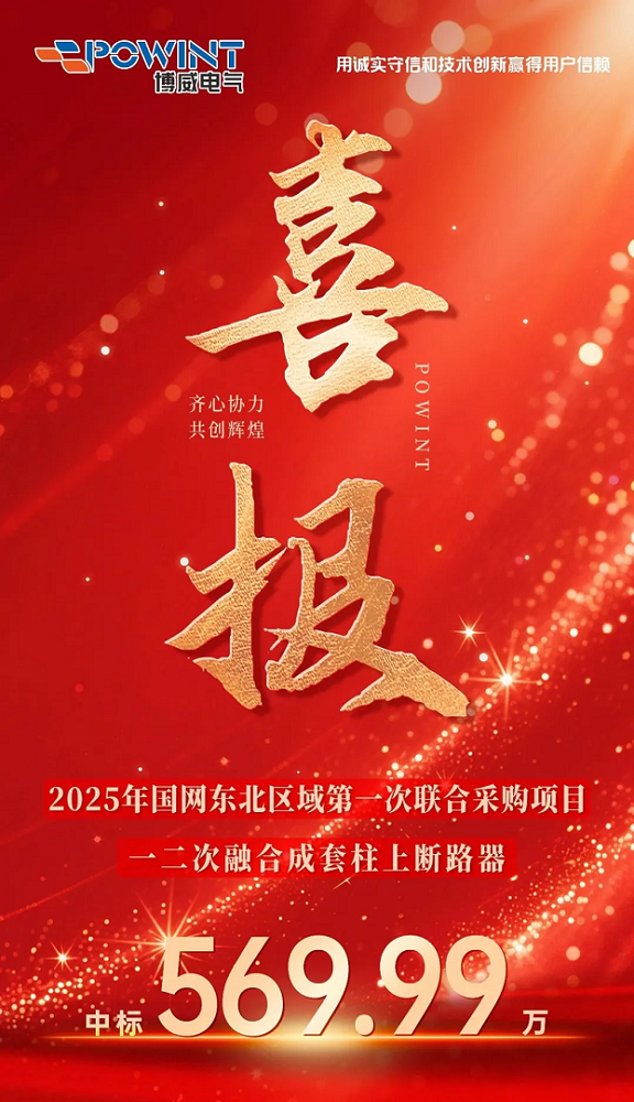 近日,博威電氣在國(guó)家電網(wǎng)"2025年?yáng)|北區(qū)域一二次融合成套柱上斷路器協(xié)議庫(kù)存第一次聯(lián)合采購(gòu)項(xiàng)目"中成功中標(biāo),中標(biāo)金額569.99萬(wàn)元。