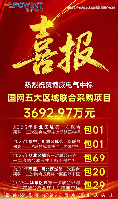 荷風六月,捷報頻傳。在國家電網(wǎng)2025年華中川渝、華北、西藏西北、東北、華東區(qū)域第一次聯(lián)合采購項目中,博威電氣憑借行業(yè)領(lǐng)先的技術(shù)實力和卓越的產(chǎn)品性能,成功中標一二次融合成套柱上斷路器產(chǎn)品。此次中標實現(xiàn)了國家電網(wǎng)五大區(qū)域聯(lián)合采購項目的"大滿貫",總中標金額達3692.97萬元。
