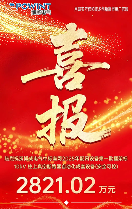 【中標(biāo)喜訊】博威電氣成功中標(biāo)南方電網(wǎng)2025年配網(wǎng)設(shè)備第一批框架招標(biāo)項(xiàng)目